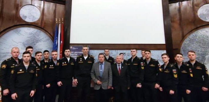Неожиданно, проведение Специальной военной операции (СВО), ведущейся Вооруженными силами Российской Федерации на территории новых субъектов, коснулось сугубо мирной деятельности, осуществляемой Гидрографическим обществом. Так, два года назад членом совета ГО д.т.н. Шарковым А.М. была выпущена книга «Как изучают Мировой океан», в которой на доступном неподготовленному читателю языке рассказывалось о гидрографии. Книга рассчитана на широкий круг читателей и популяризирует деятельность гидрографов во всем мире. К настоящему времени вышло уже два тиража по 1000 экземпляров каждый. Несколько десятков экземпляров были направлены автором в зону ведения боевых действий и вручались детям раненных бойцов, находящихся в госпиталях на излечении. В каждую книгу была вложена открытка, адресованная детям и указывающая, что их отец настоящий герой. Спустя некоторое время автору начали поступать телефонные звонки с Украины с требованием полностью изъять книгу из обращения и угрозами в случае невыполнения указанного требования. За отказ автор книги был внесен в печально известную украинскую базу «Миротворец», в которой содержатся сведения о тех, кто представляет опасность киевскому режиму. Пришлось заблокировать несколько телефонных номеров, с которых поступали угрозы. ПРАЗДНИЧНЫЕ МЕРОПРИЯТИЯ В ЧЕСТЬ 325-ЛЕТИЯ НАВИГАЦКОЙ ШКОЛЫ24 и 25 января в Санкт-Петербурге прошли праздничные мероприятия, посвященные 325-летию со дня образования Навигацкой школы (ныне - Военно-морской институт — Морской корпус Петра Великого). В них приняли участие многие члены ГО. Праздничные мероприятия начались утром 24 января с подъема Военно-морского флага с гербом Морского корпуса на Астрономической башне. На парадном дворе состоялись митинг и торжественная церемония возложения цветов к обелиску Памяти «Фрунзенцам», геройски павшим в боях за свободу и независимость нашей Родины». Присутствовали ветераны-выпускники, командование ВУНЦ «Военно-морская академия», представители Главного командования ВМФ, органов государственной власти города, почётные гости.