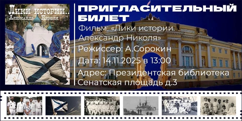 Фильм о гидрографе и общественном деятеле кап. 2 ранга А.С. НиколяВ Президентской библиотеке, 14 ноября 2025 года в 14:00 по московскому времени в рамках киноклуба Президентской библиотеки состоится показ документального фильма режиссёра Александра Сорокина «Лики истории. Александр Николя».